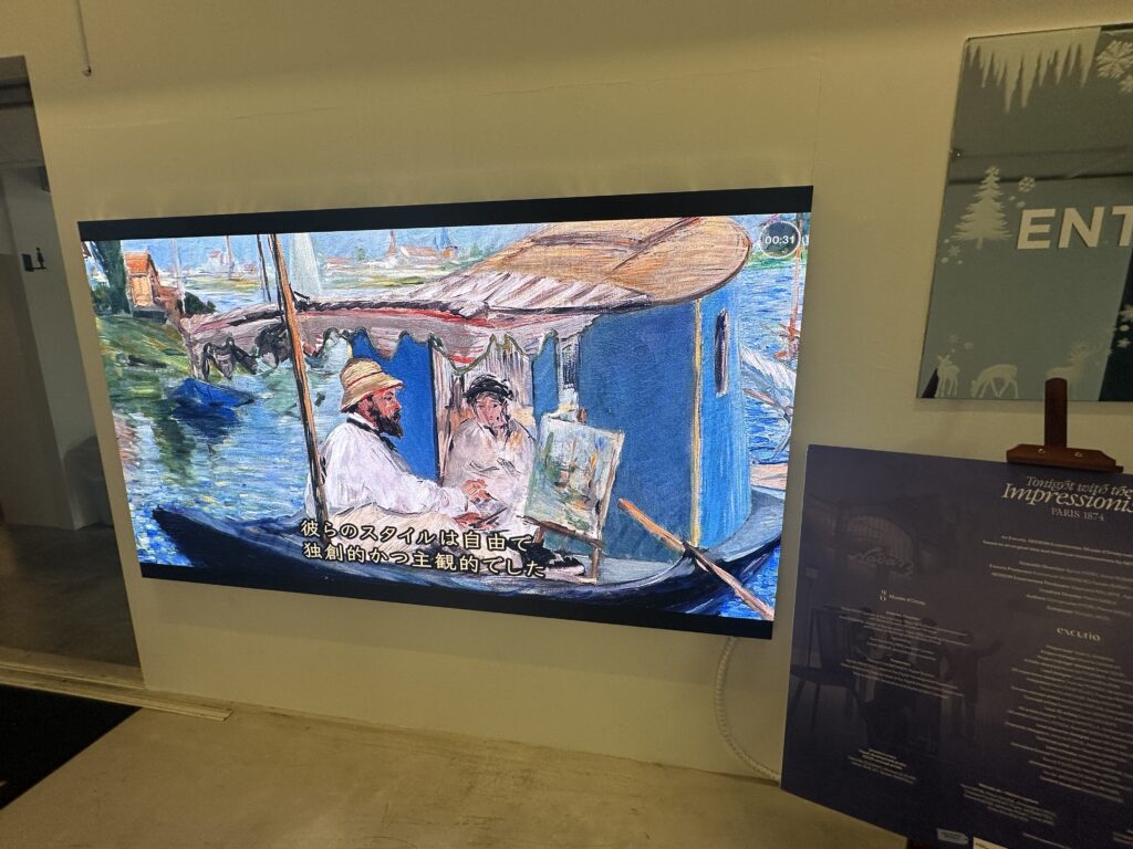 これは、圧巻でした。最初は、1874年のパリのカピュシーヌ大通りを歩くのですが、あまりにもリアルなので、タイムスリップしたような錯覚を覚えました。それから会場に入るのですが、そこも凄くリアルで、画家たちが直接、絵を説明してくれるのも臨場感がありました。
